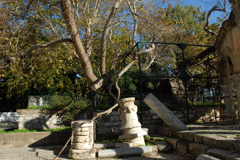 Δίπλα στον πλάτανο υπάρχει οθωμανική κρήνη, χτισμένη από τον Τούρκο διοικητή Γαζή Χασάν (1792). Το νερό της χύνεται μέσα σε αρχαία σαρκοφάγο.
